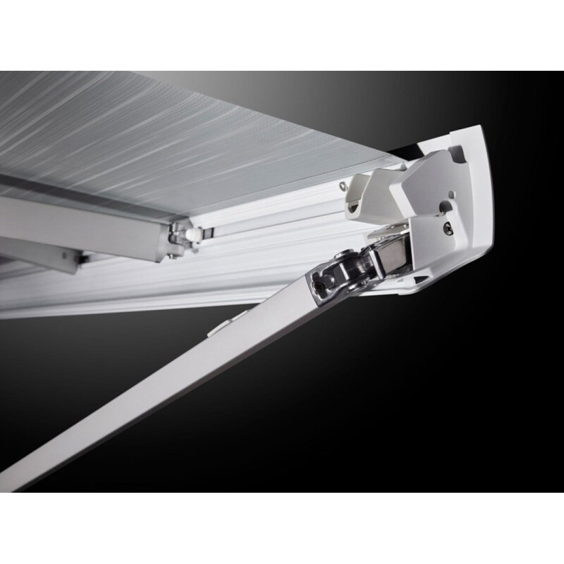 Robust spring arms with tension arms that ensure perfect tension of the awning fabric and increase wind resistance